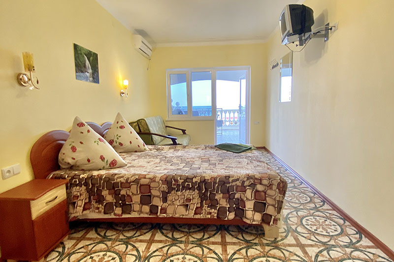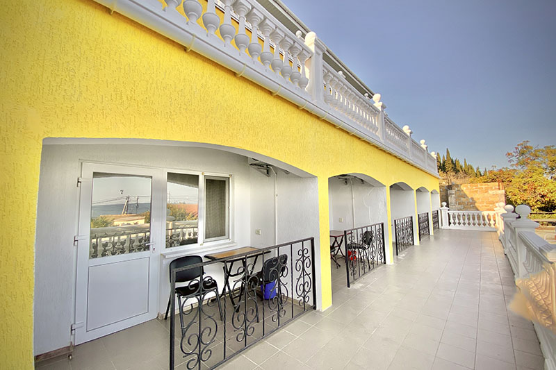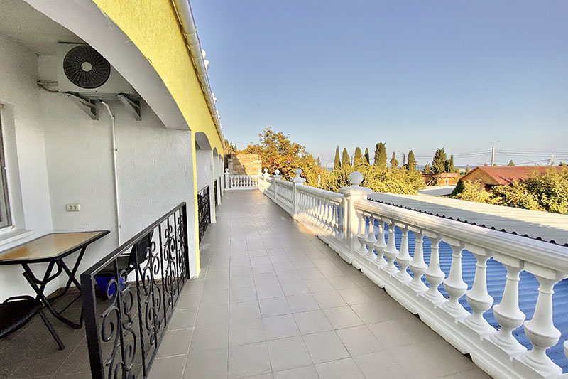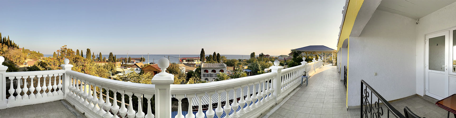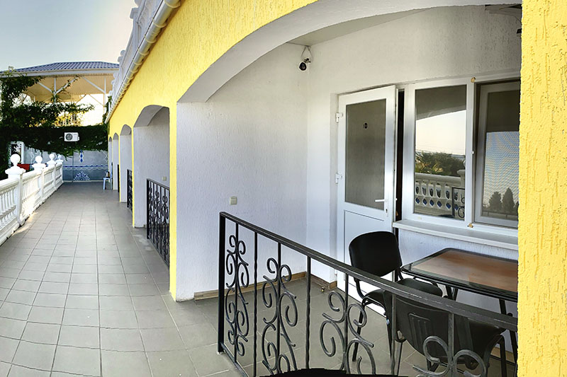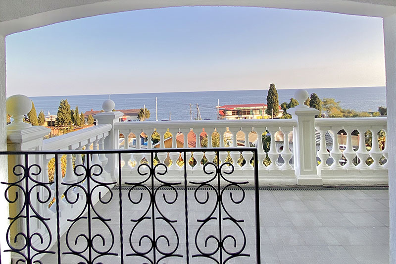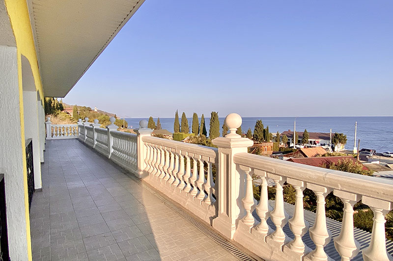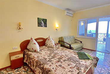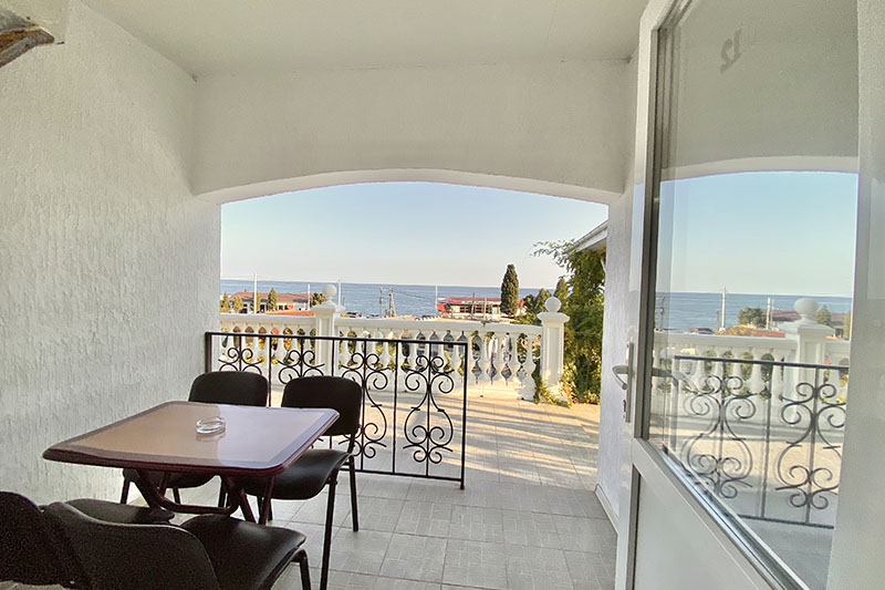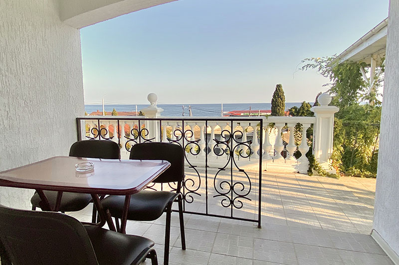 У большинства наших номеров есть терраса с видом на море. Море здесь красивое, слева и справа от синей морской глади возвышаются крымские горы.