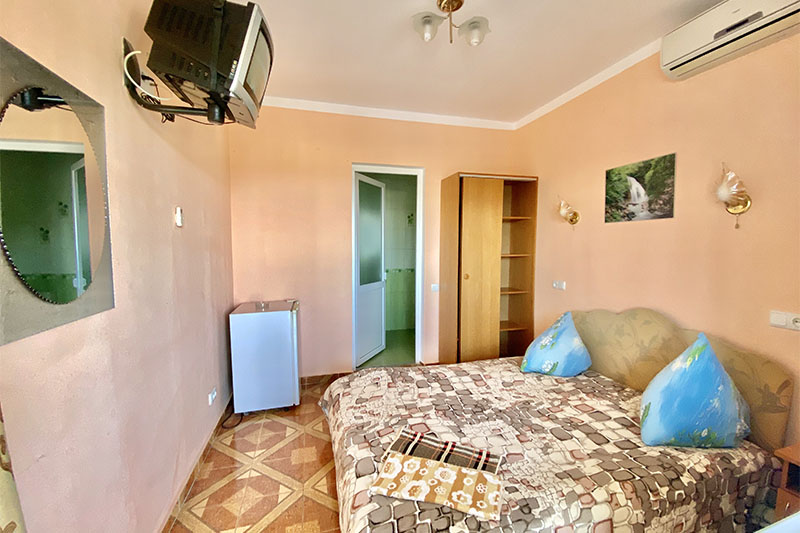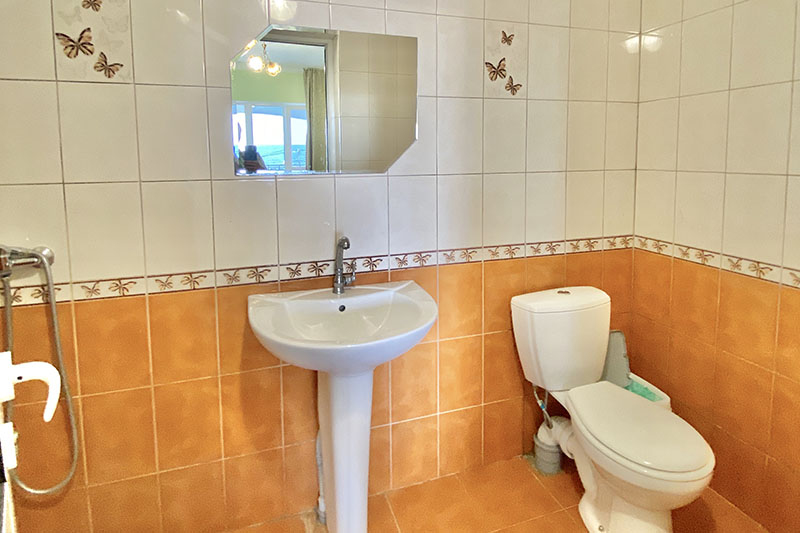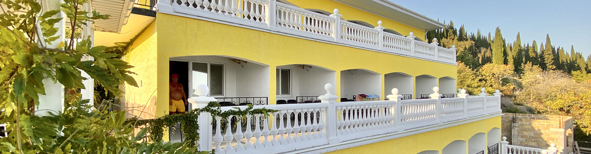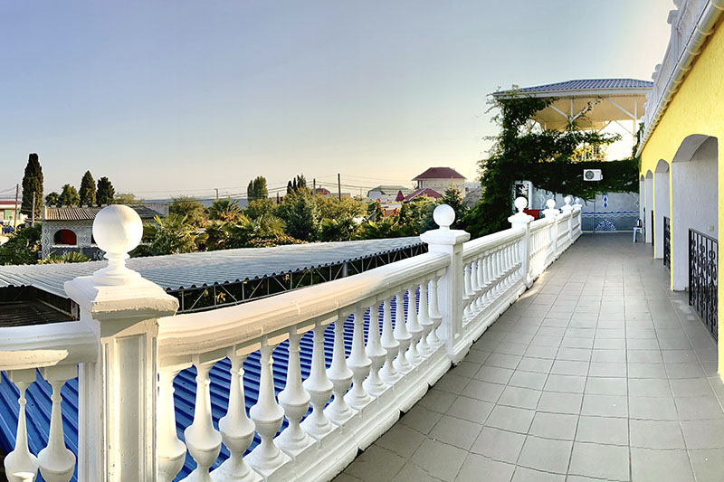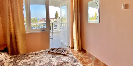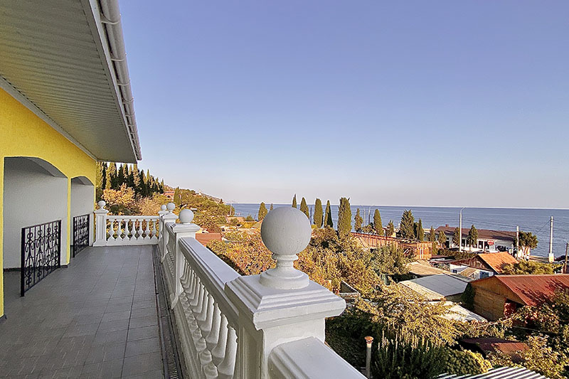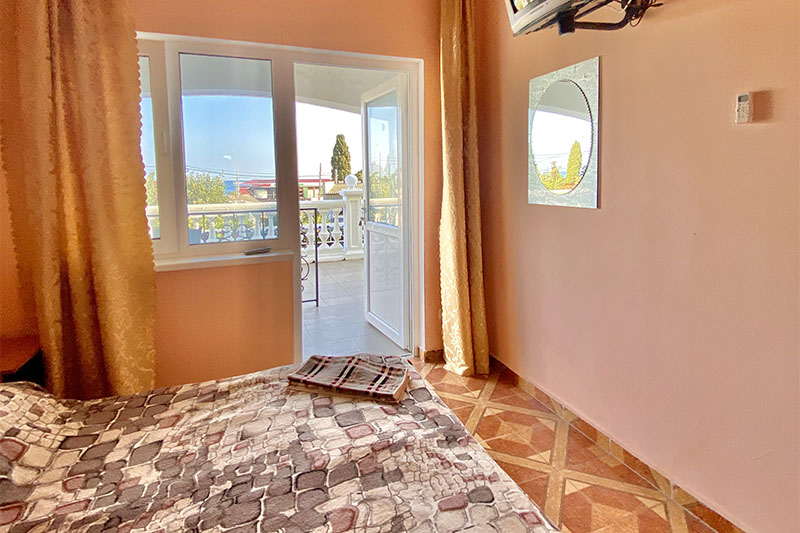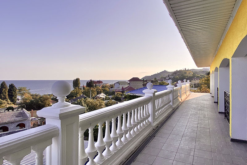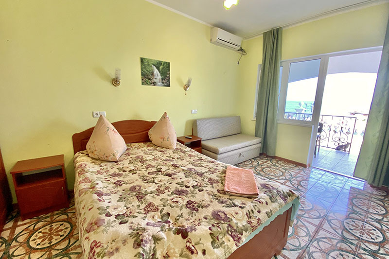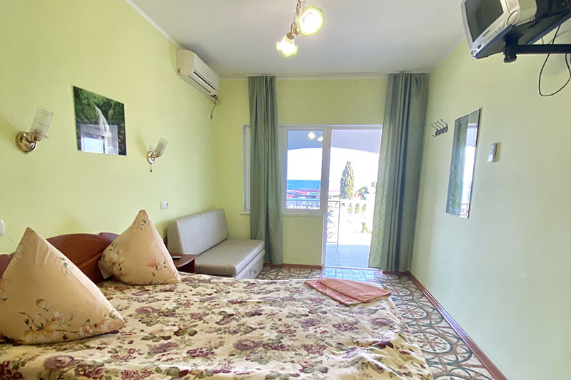 У большинства наших номеров есть терраса с видом на море. Море здесь красивое, слева и справа от синей морской глади возвышаются крымские горы.